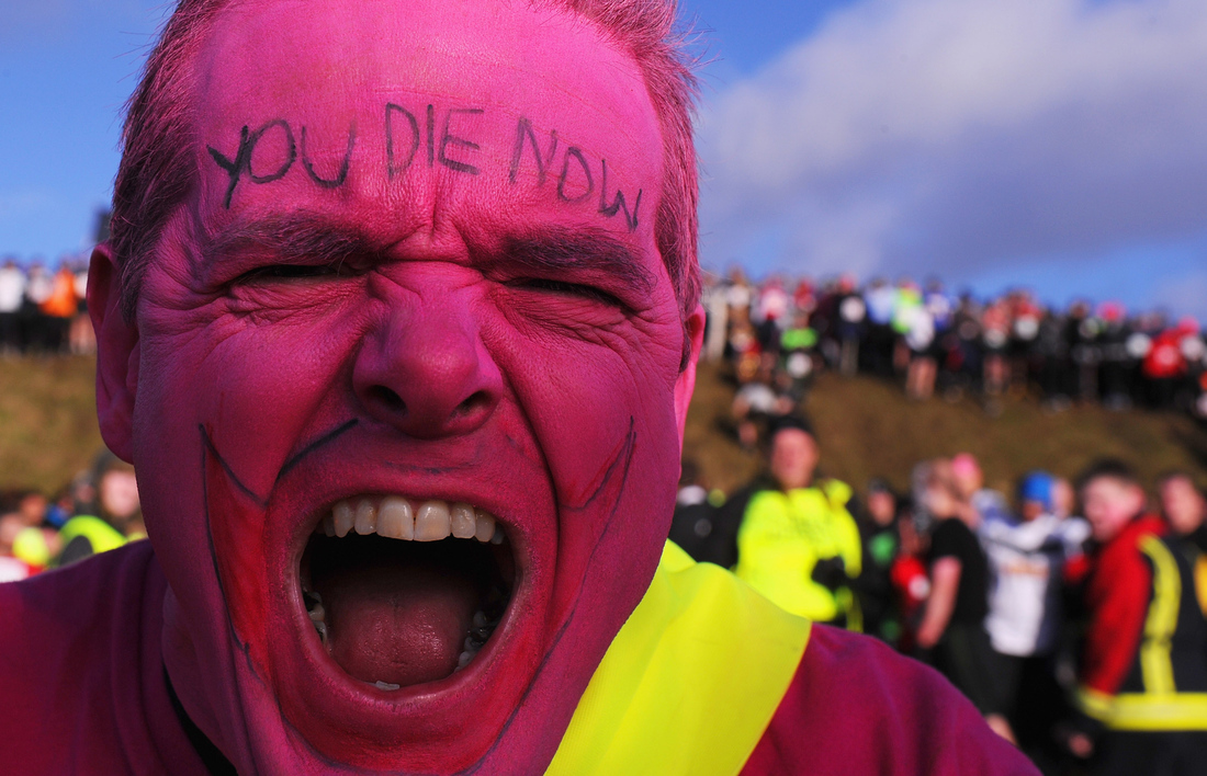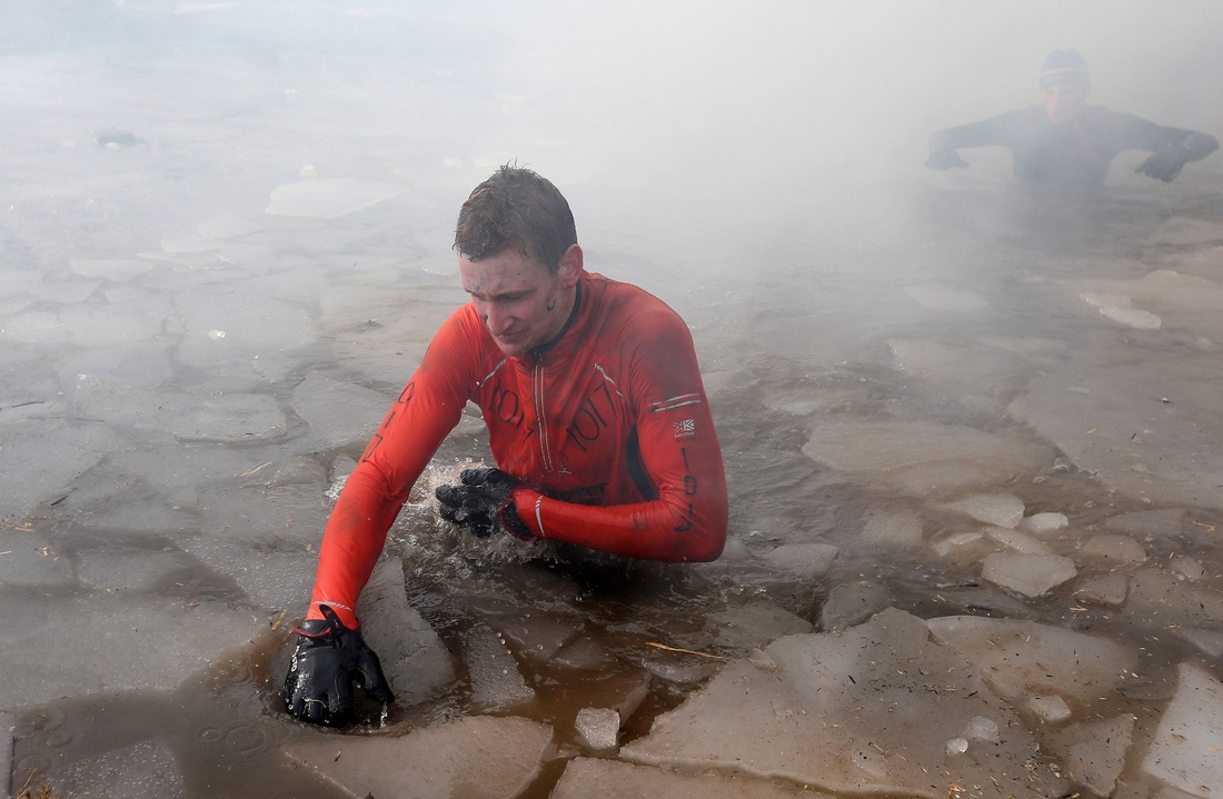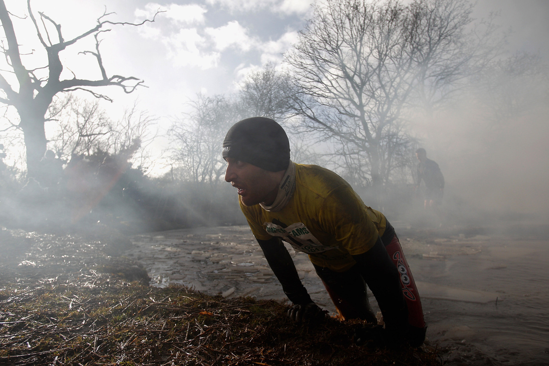 This year's race was won by Knut Hoehler, who finished the 15k-course in a time of 1:26:22. Of course, it's not just a 15k. Running in the cold may be difficult enough, but that's before competitors reach the Killing Fields -- a 1000m scramble down a 45-degree decline leads to mud-filled ditches, ponds still frozen-over that must be waded through, barbed wire and fire pits.